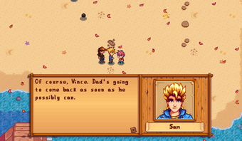 No entanto ele tem um hábito de começar projetos ambiciosos e não terminá-los. Sam receives one new event in Stardew Valley Expanded.